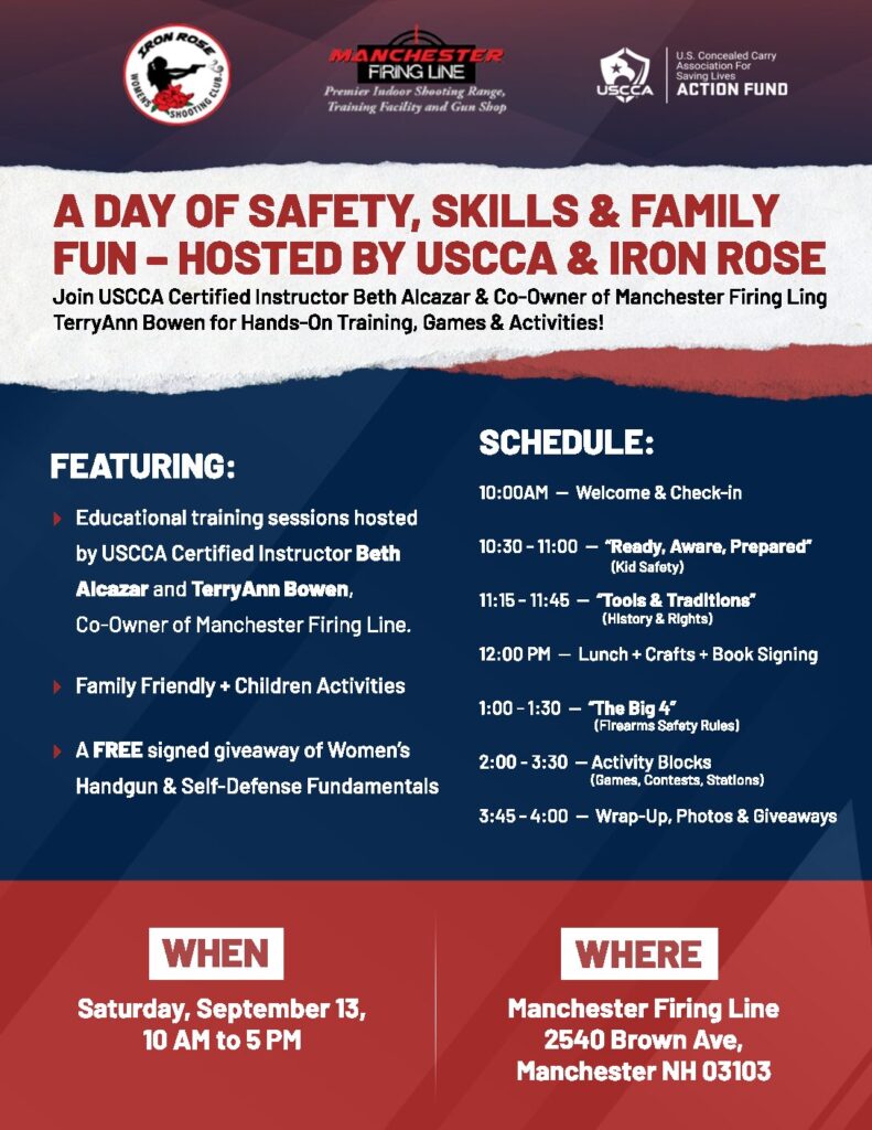 | FREE FAMILY SAFETY EVENT 9/13/2025 with author and Instructor Beth Alcazar and our very own TerryAnn Bowen of Iron Rose Women’s Shooting Club |